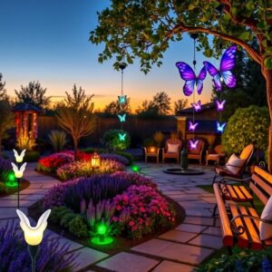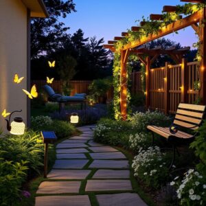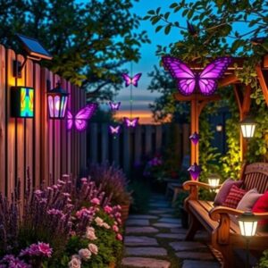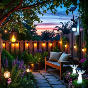 Create a peaceful outdoor retreat with enchanted solar garden lighting, color-changing lights, and soothing solar wind chimes for serene ambiance.