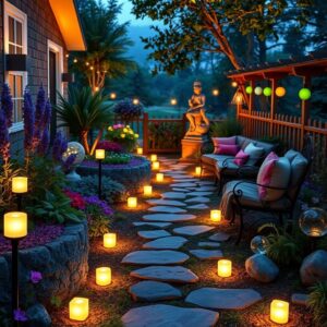 Transform your outdoor space with enchanting twilight garden pathway lighting using warm solar lights and flexible LEDs for a magical ambiance.