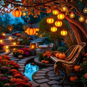 Discover how to create a whimsical autumn twilight garden with cozy lighting, seasonal decor, and solar garden lights for a magical outdoor space.