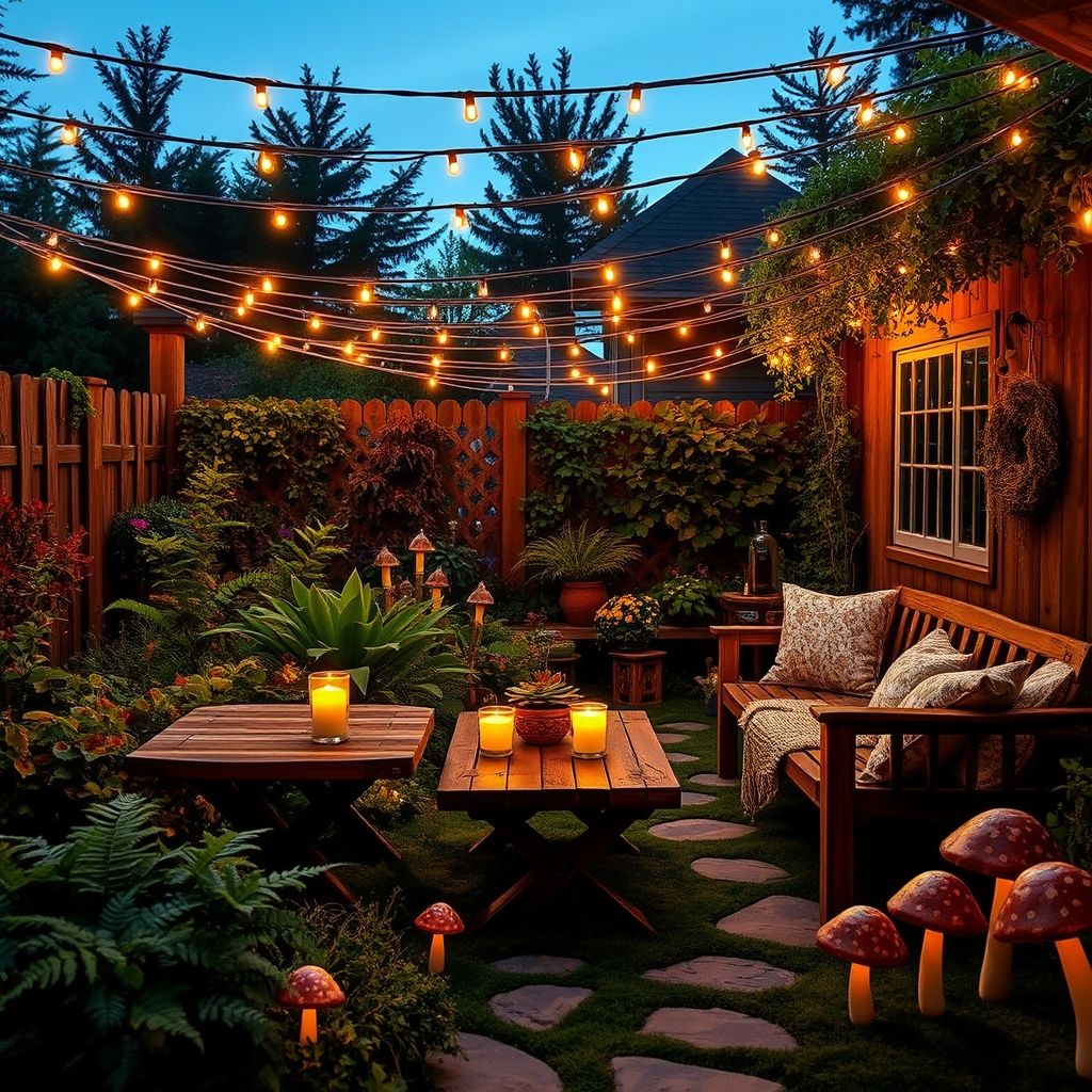 Create an enchanted fairy garden with whimsical lighting and natural décor to transform your outdoor space into a magical oasis.