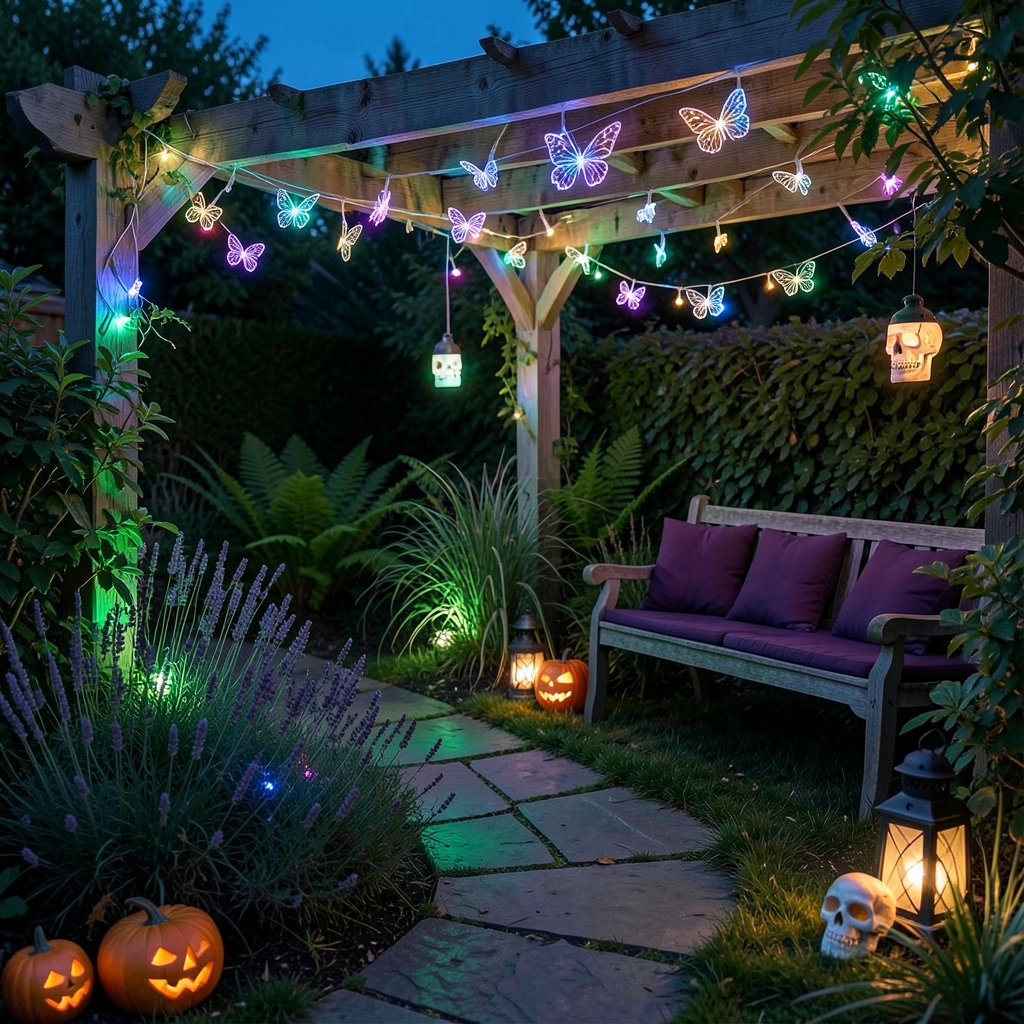 Discover how to create an enchanted garden lighting setup blending whimsy and Halloween magic for a mystical twilight outdoor space.