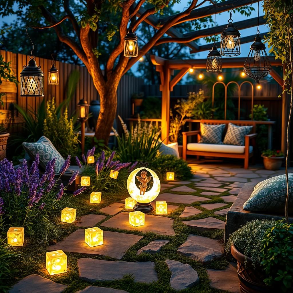 Together, these lighting touches build a garden that feels alive with magic—inviting you to step inside a twilight wonderland where every shadow and shimmer tells a story.