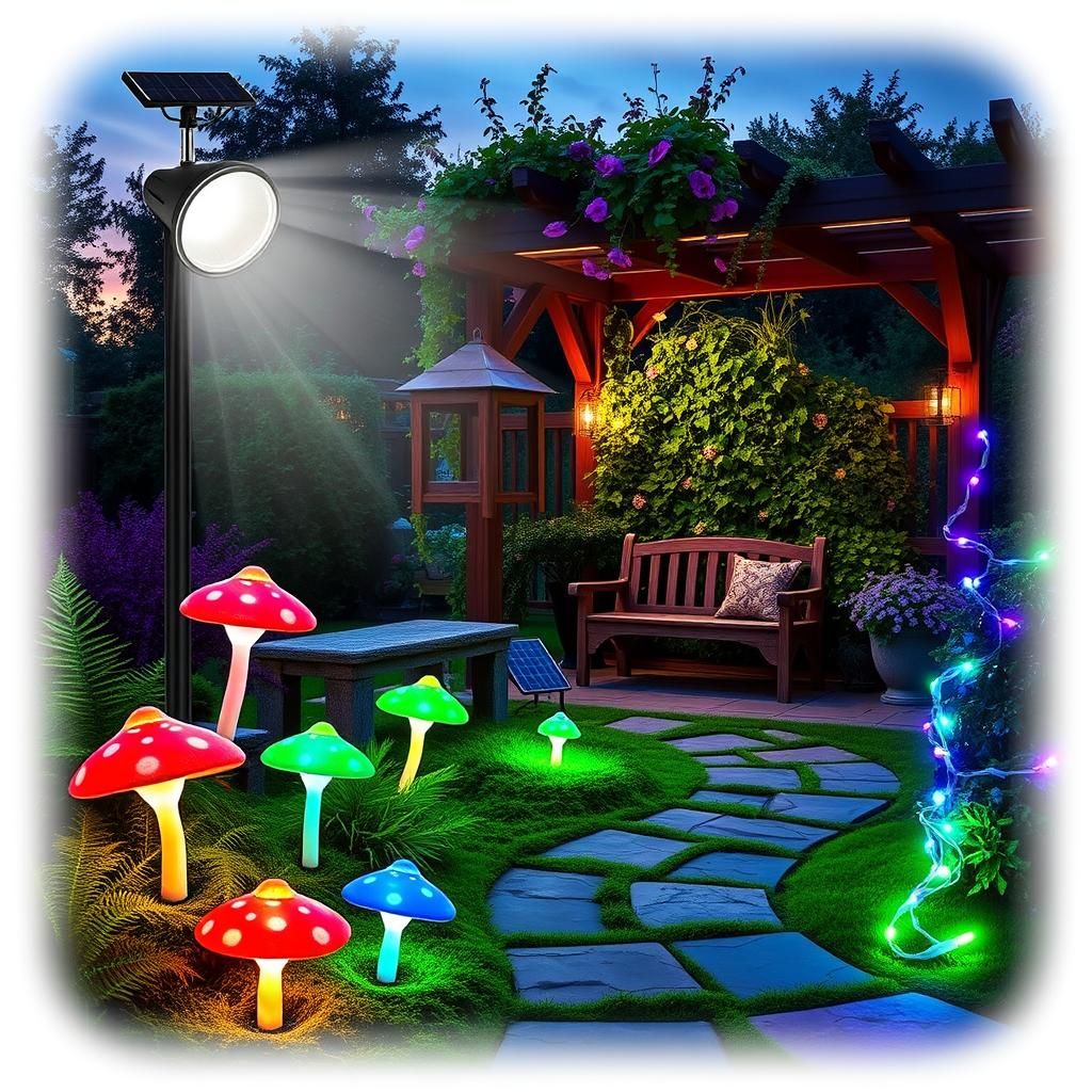 Imagine stepping into your garden as dusk settles, where shimmering mushroom lights dot the undergrowth like tiny fairy lanterns, and a single solar spotlight casts soft beams that highlight a weathered stone bench or a gently bubbling fountain. The interplay of light and shadow here is anything but random—it’s a carefully woven tale of mystery and calm. This is where your woodland glow truly takes shape, inviting the imagination to wander among rustling leaves and dappled patterns on the ground. Layering colorful accents with brighter focal points breathes life into the night, turning ordinary plants and stones into magical elements that sparkle and shift as evening deepens.