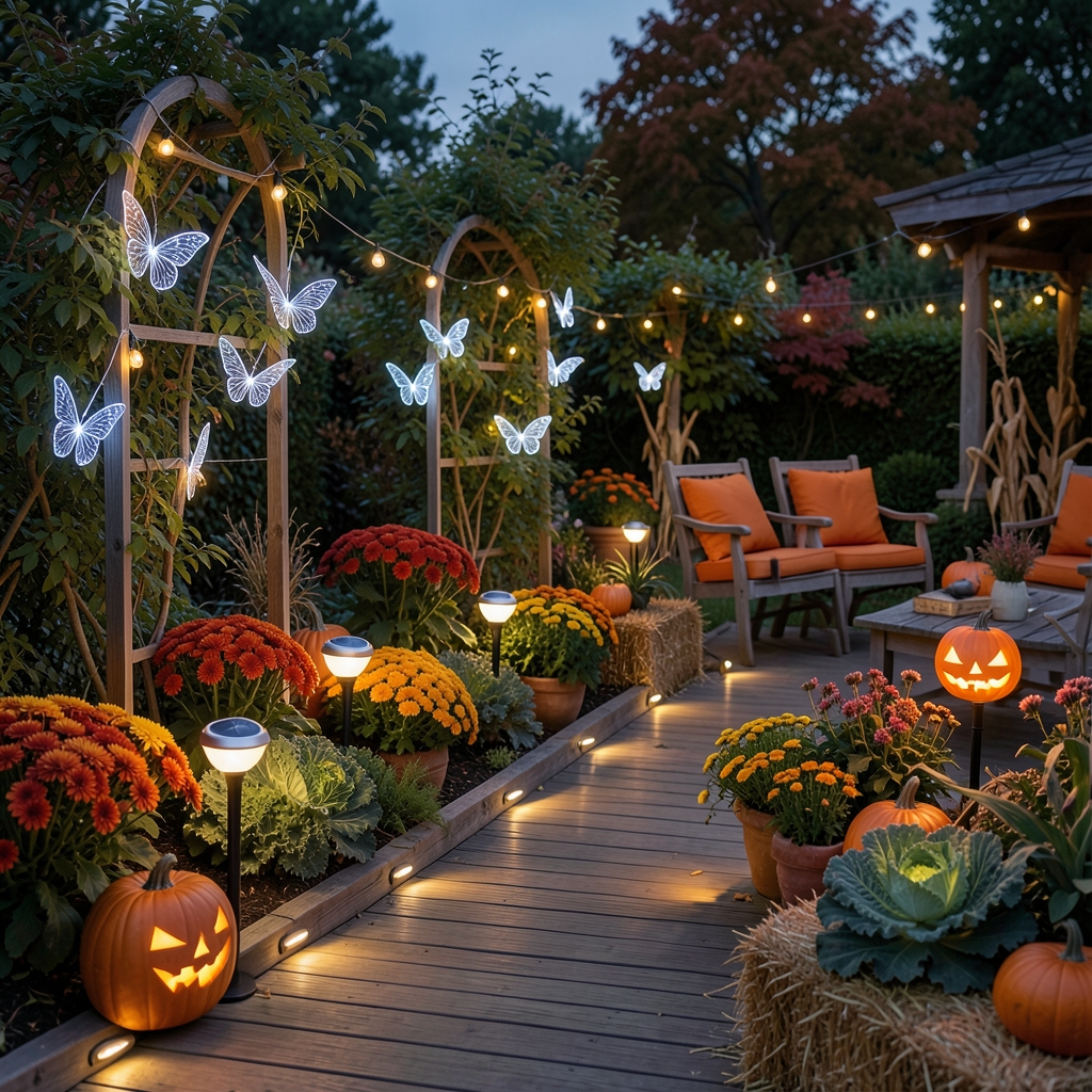 Imagine stepping into your garden on an autumn evening where every corner whispers cozy secrets—pumpkin stake lights glowing like friendly lanterns, fairy string lights draped like delicate wings, all woven seamlessly through natural textures. This is where creativity dances with nature: rustic pumpkins mingle with soft, solar-lit glows; hay bales and warm cushions invite lingering talks under starlit skies. Your enchanted autumn garden becomes more than décor—it’s a sanctuary for savoring crisp nights, sharing laughter, or simply losing yourself in the gentle magic that only fall can bring. So go ahead, let your outdoor haven sparkle with subtle charm and sustainable grace, turning every autumn evening into a fairy-tale moment waiting to unfold.