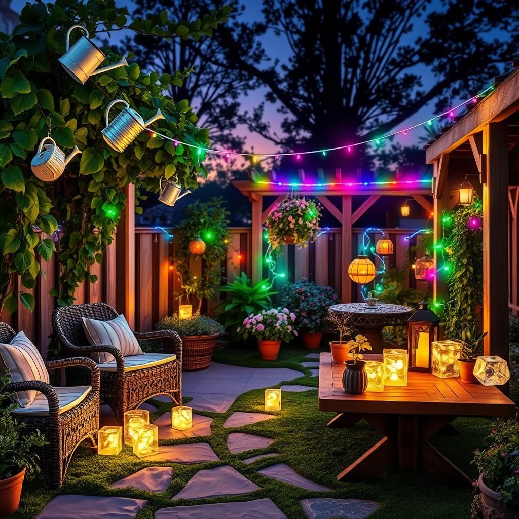 Now, imagine splashy streaks of color tracing the edges of your garden—along pergolas, fences, and flower beds. Long LED strips bring a ribbon of radiance that dances with the breeze, weaving pathways of light that expand your outdoor living space in mesmerizing ways. They don’t just mark boundaries; they paint them with playful hues that shift and flow, setting a vibrant, joyful tone to your fairy-tale evening.