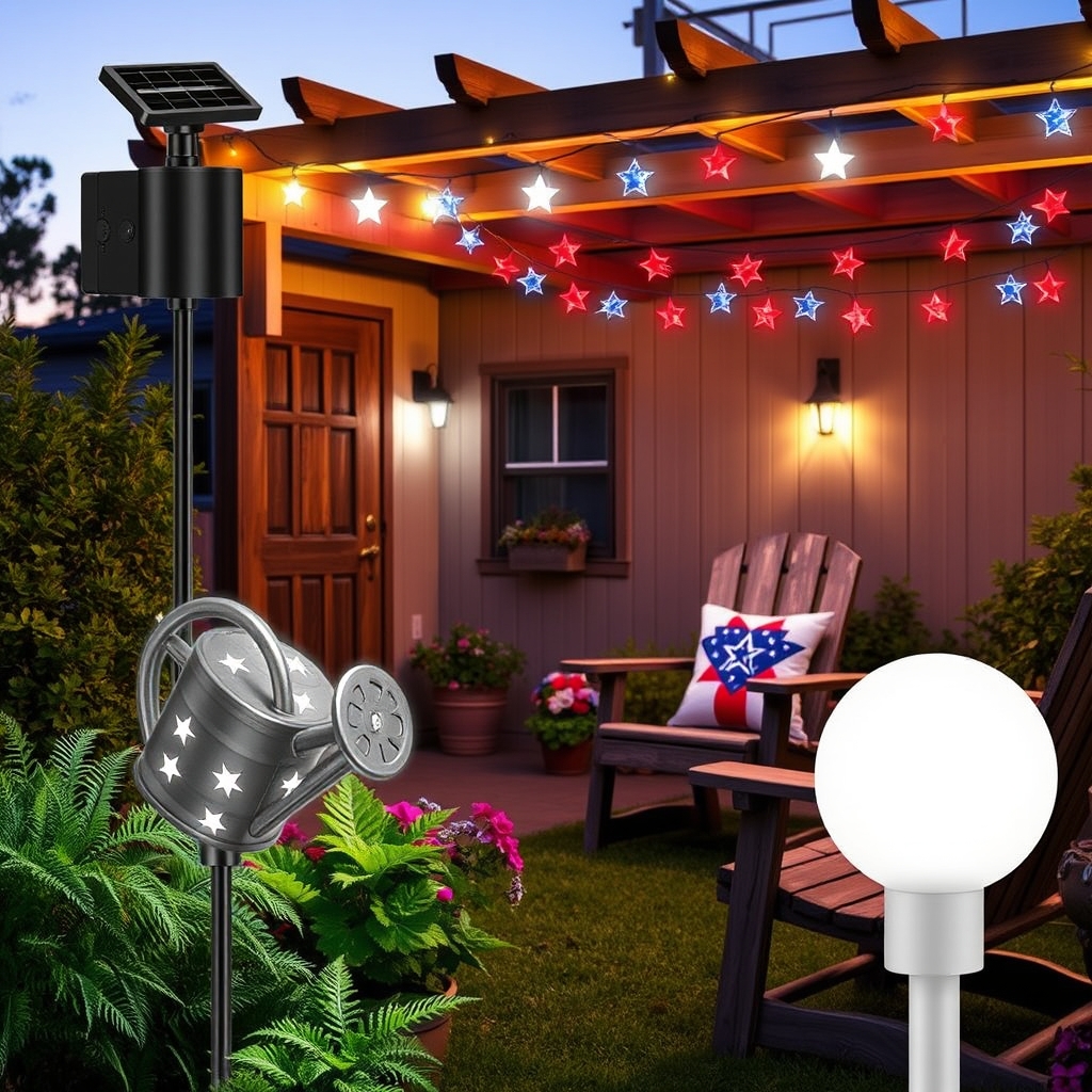 Above cozy seating clusters, bring the fête to life with cheerful star-shaped lights strung in festive red, white, and blue. Draped along fences or arched over pergolas, these vibrant accents sparkle like tiny fireworks frozen in time. The colors celebrate heritage with a joyful twinkle while the playful shapes invite laughter and conversation. Your garden becomes more than just a space—it transforms into a patriotic sanctuary where magic and merriment glow hand in hand.
