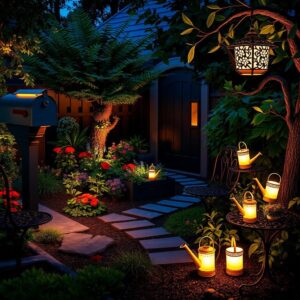 Every inch of your garden can tell a story, shaped by where you place each element. Nestle lavender and rosemary near your wind chime, so scent drifts alongside gentle tones. Position seating—perhaps a worn wooden bench or cushy rattan chairs—just right to catch both light and melody, turning simple gatherings into enchanted evenings. Let colorful solar lights highlight your favorite plants, from ferns to vibrant impatiens, creating pockets of magic that reflect your style and mood. By blending nature, light, and sound thoughtfully, your garden becomes more than outdoor space—it becomes a sanctuary that feels uniquely yours.
