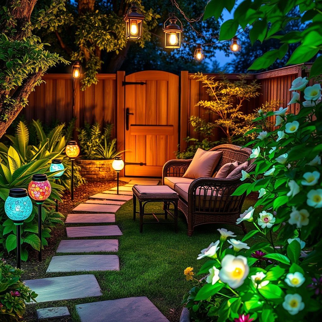 Decorative touches do their part, too. Hanging lanterns cast gentle pools of light, hinting at stories told in shadows. Wind chimes catch the breeze, their soft melodies weaving through the night like a lullaby for your garden. These little details aren’t just accessories; they’re threads in the fabric of an enchanting space—one that welcomes you, your friends, and your family to share in its quiet wonder long after the sun goes down. Together, plants, furniture, and decor build a sanctuary that’s not just seen but felt—an outdoor haven where every element sings in tune with the soft, sustainable light that transforms your garden into a magical retreat.