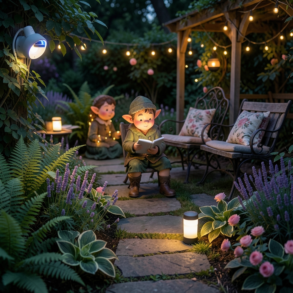 These three lighting types work in concert, each playing its part without stealing the show. Motion sensors keep intruders at bay and guide your footsteps with confidence. Elf lights sprinkle whimsical pockets of warmth, inviting slow strolls and quiet moments. LEDs outline pathways and highlight trees, pulling every enchanting detail into the spotlight. Together, they create a rhythm of light that’s both functional and fantastical—the perfect harmony for enjoying your garden long after the sun dips below the horizon.