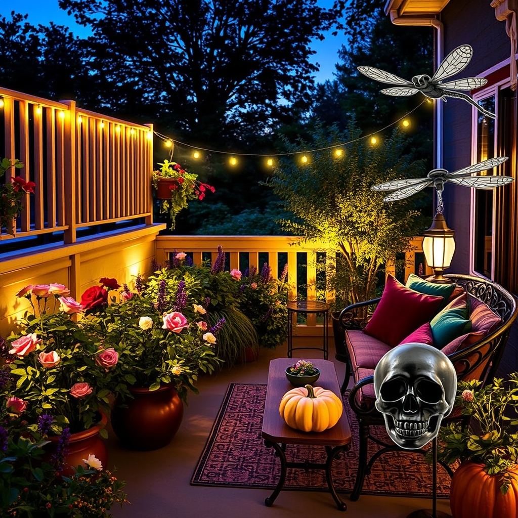 Imagine settling into your garden as twilight deepens, where soft shadows play and a gentle breeze stirs a quiet thrill. Here, subtle spooky accents come to life without shouting Halloween. Picture swaying skull lights nestled in a cozy corner, their slow, mesmerizing motion catching the eye just enough to spark curiosity—a whisper of the season’s magic rather than a ghostly parade.