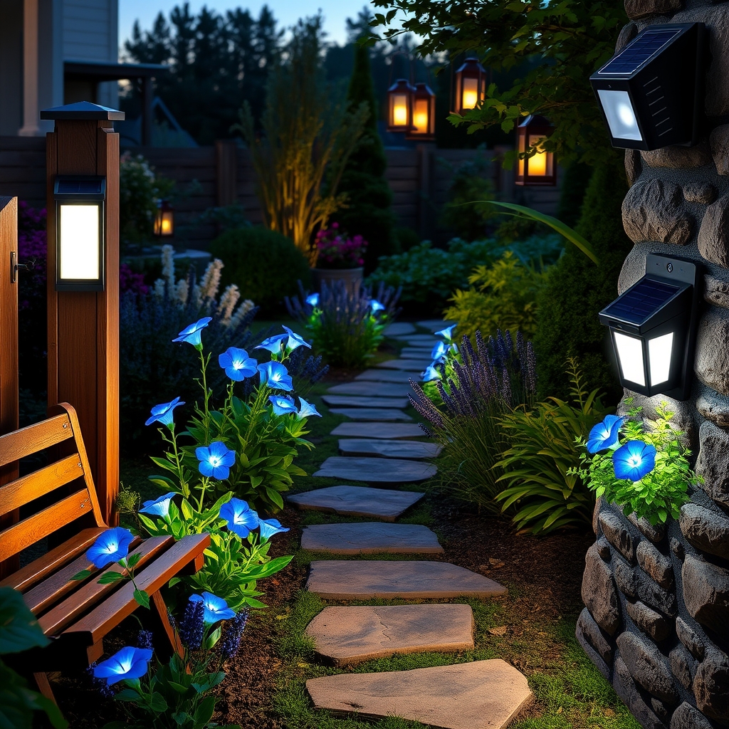 Picture this: a wrought iron bench tucked beneath the gentle canopy of a flowering tree, its curves inviting you to pause and soak in the garden’s soft glow. Or perhaps a rustic wooden seat, weathered just enough to tell stories, positioned near a cluster of solar flower lights that sprinkle color like magical fireflies. These touches aren’t just furniture—they’re an open invitation for guests to linger, breathe, and lose themselves in your enchanting garden. Add a few stepping stones leading the way, smooth and natural, like secret markers on a woodland path. Garden statues peek from the shadows, lending character and whimsy, while hanging lanterns—solar-powered, of course—cast flickering patterns that dance with the evening breeze. Together, these elements weave comfort and charm into the heart of your outdoor haven.