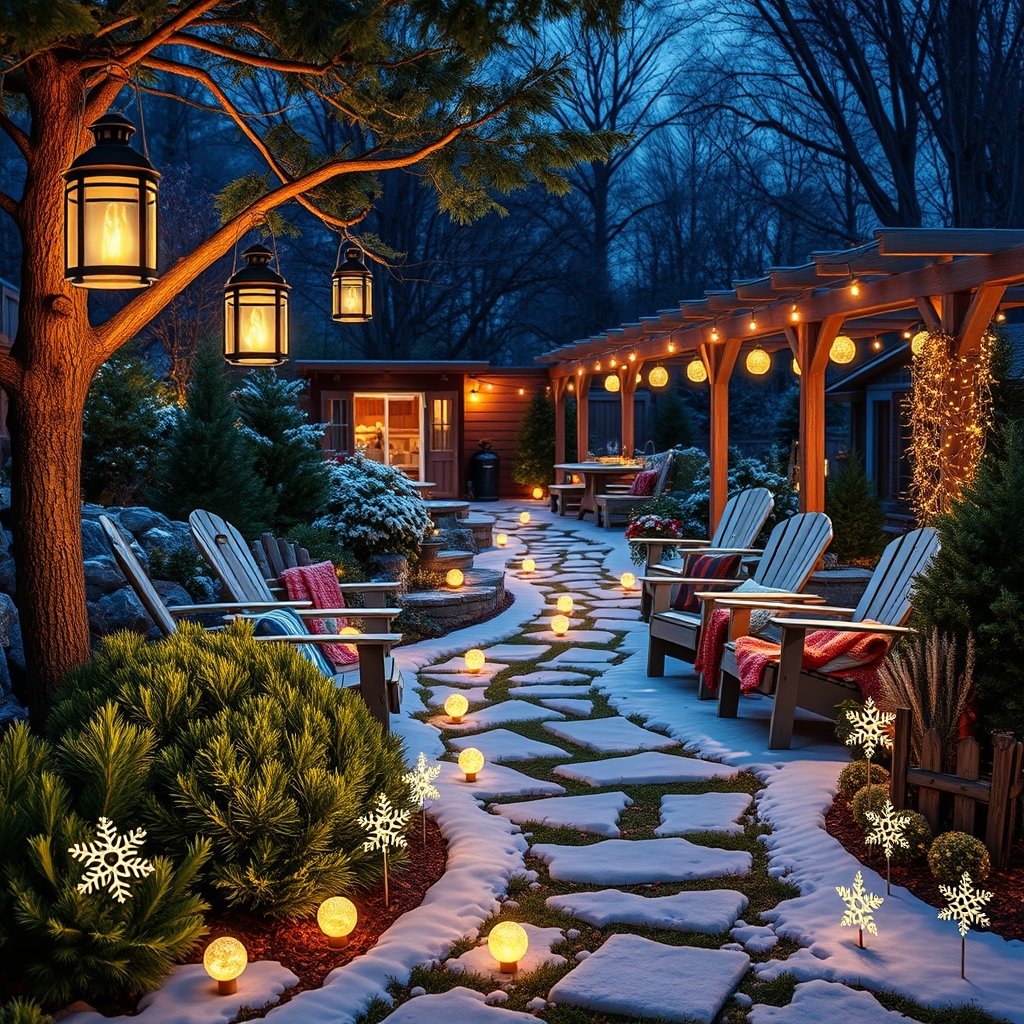 Imagine stepping into your winter garden as dusk settles—soft pools of warm light beckon you closer. This is where cozy furniture turns mere space into a welcoming nook. Think cushioned benches or those classic Adirondack chairs, their rich wood tones glowing under the lanterns’ flicker. Draping warm throws over them invites you or your guests to linger a little longer, wrapped in comfort while the garden hums quietly around you. Arrange seating so each spot offers a front-row view of your glowing light features—whether it’s the gentle sweep of stringed lanterns overhead or the sparkle of fairy-like stakes tucked among the evergreens. This isn’t just outdoor furniture; it’s your personal invitation to slow down, breathe in the crisp air, and savor the magic spun by the lights.